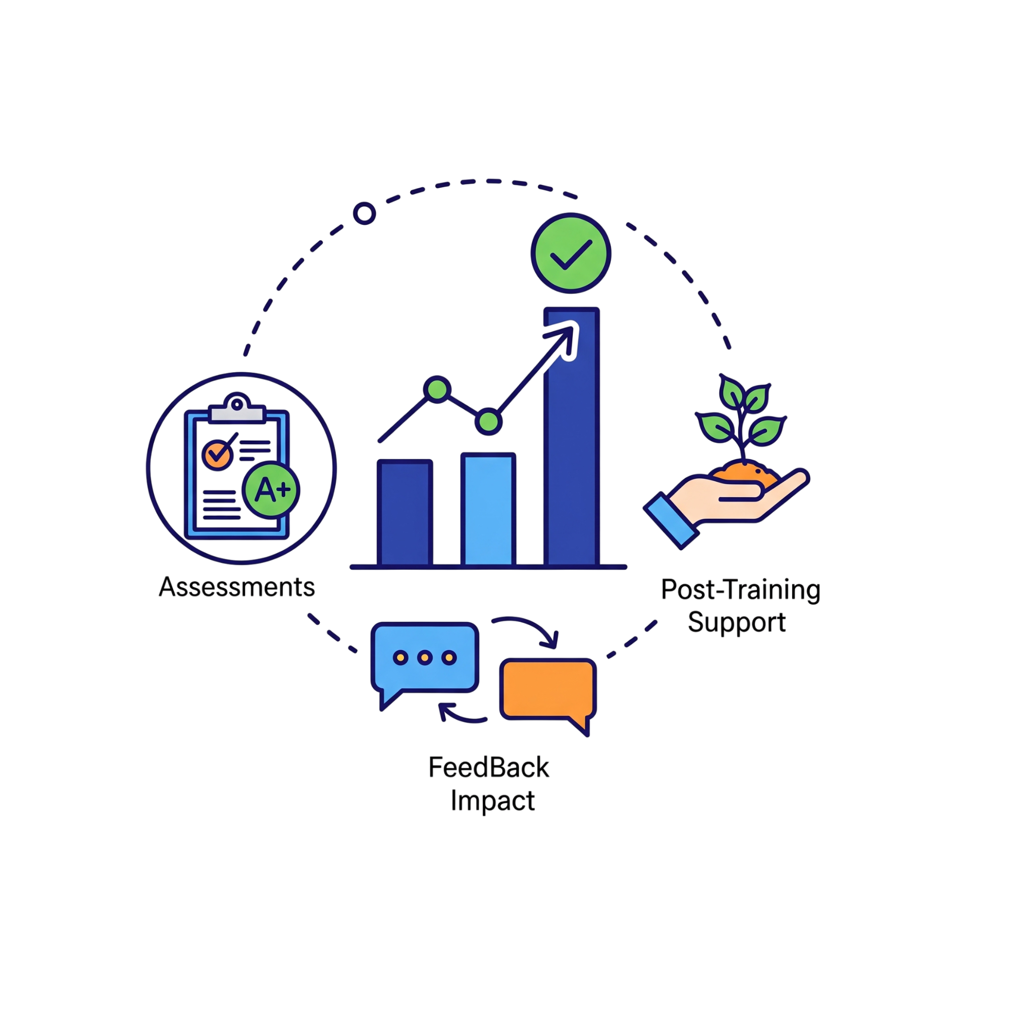 Every program includes assessments, feedback loops, and post-training support to ensure knowledge transfer translates into workplace performance.