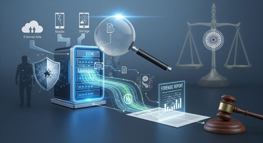 EEM helps organizations achieve and maintain regulatory compliance by ensuring adherence to both domestic and international standards such as GDPR and the IT Rules in India. Key aspects include preparing for audits with tamper-proof digital records and detailed logs, identifying and rectifying potential non-compliance risks, and aligning internal practices with applicable regulations. By implementing these measures, organizations can avoid regulatory penalties, safeguard sensitive data, and demonstrate a commitment to legal and ethical practices.